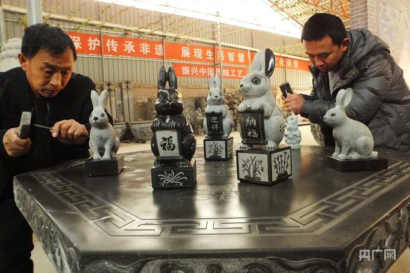 央廣網(wǎng)運(yùn)城12月29日消息(記者任重)隨著農(nóng)歷兔年的日漸臨近,關(guān)于生肖兔的各種物件也紛紛登場。就在山西運(yùn)城市新絳縣北張鎮(zhèn)西莊村農(nóng)民石雕創(chuàng)業(yè)園區(qū)內(nèi),由非遺絳州石雕制作技藝省級傳承人家玉順和市級傳承人家金輝精心設(shè)計并雕刻的絳州石雕兔年生肖作品于日前面世。