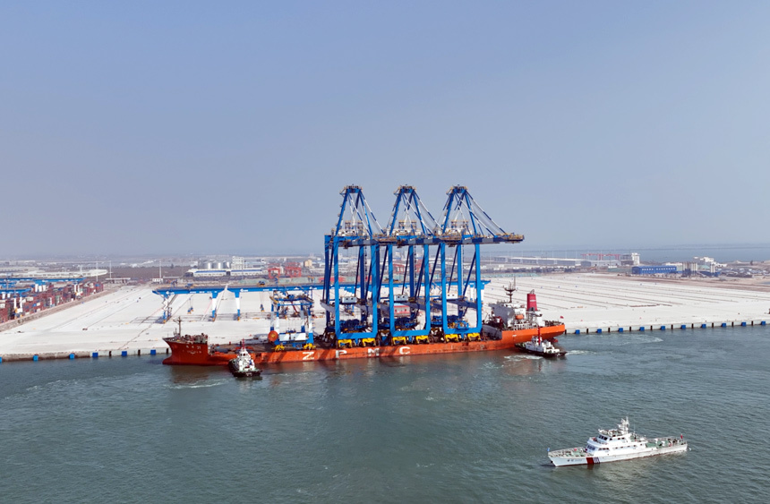 人民網(wǎng)欽州1月3日電 近日,載運(yùn)著3臺超大型集裝箱碼頭岸橋和1臺軌道吊的特種運(yùn)輸船“振華31”輪安全進(jìn)入欽州港。至此,欽州自動(dòng)化集裝箱碼頭二期20萬噸碼頭項(xiàng)目進(jìn)入岸橋設(shè)備安裝和自動(dòng)化調(diào)試工作階段。