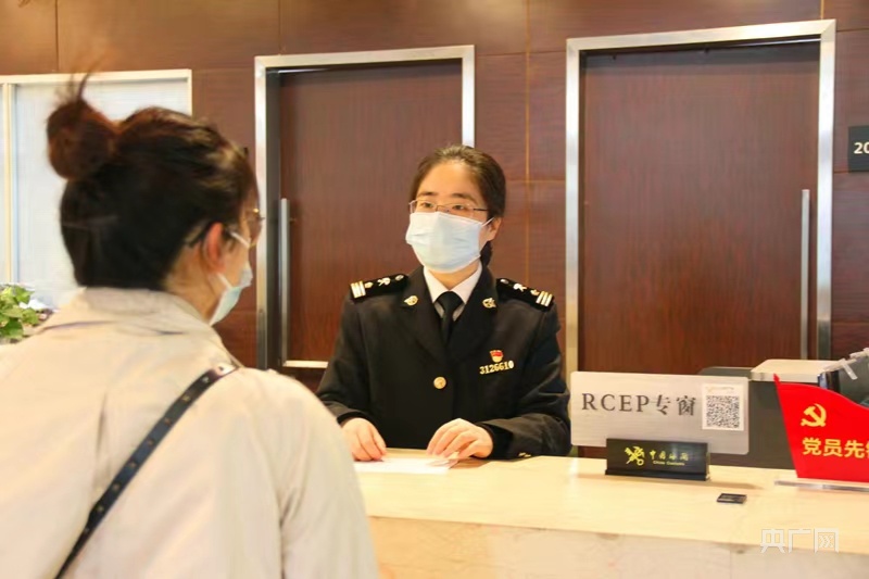 寧波海關(guān)關(guān)員在解答簽證企業(yè)RCEP相關(guān)業(yè)務(wù)咨詢(央廣網(wǎng)發(fā) 趙悅辰 攝)