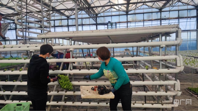 “我家就在附近,我是利用農(nóng)閑時間來這里打工賺錢,每天主要負責水培基地蔬菜的種植和管護。這個水培蔬菜,25到40天就能產(chǎn)一茬,水分足,還不含農(nóng)藥?,F(xiàn)在為了保障春節(jié)期間的供應(yīng),我們也加大了種植面積?!惫ぷ魅藛T張紅蘭說。