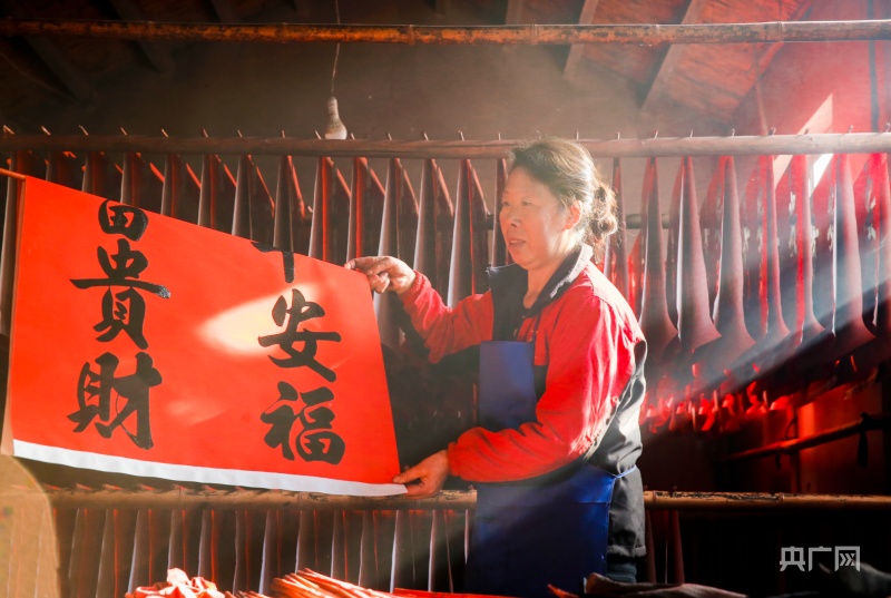 村民正在印刷春聯(lián)(央廣網(wǎng)發(fā) 郭連云攝)