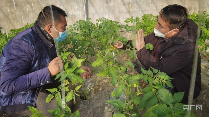 技術人員指導農戶種植蔬菜(央廣網(wǎng)發(fā) 高月 攝)