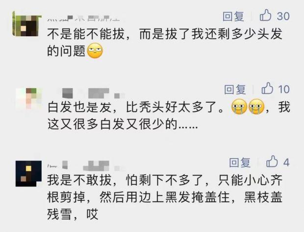 一些人在壓力較大時,可能會將疼痛感轉(zhuǎn)化為某種獲得感,在一定程度上緩解焦慮。但更多人是從拔白頭發(fā)這件事當中獲得一種視覺上的自信——似乎又回到了頭發(fā)烏黑的時代。