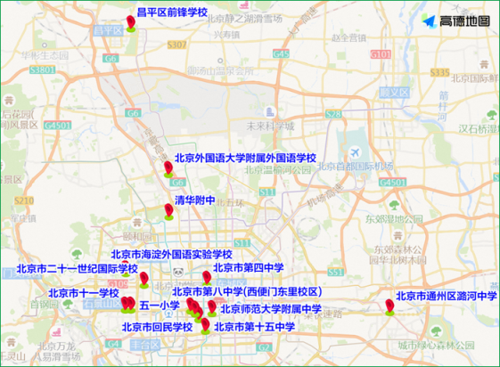 早間,中關(guān)村、廣渠門、什剎海、豐臺西南四環(huán)等學(xué)校較為集中的地區(qū)交通壓力突出。清華附中、北京四中、皇城根小學(xué)、十一學(xué)校、海淀外國語實驗學(xué)校、師范大學(xué)第二附屬中學(xué)海淀學(xué)校、第十二中學(xué)科豐校區(qū)等校園周邊車流集中,校園門前道路容易出現(xiàn)行駛緩慢的情況。各中學(xué)周邊道路車流高峰將出現(xiàn)在7:00至7:30;小學(xué)周邊車流高峰普遍出現(xiàn)在7:30至8:00。