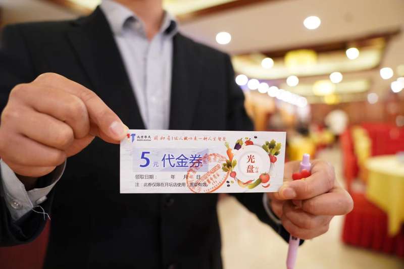 為鼓勵(lì)顧客打包剩余餐食,同和居月壇店會(huì)發(fā)放代金券。新京報(bào)記者 王飛 攝