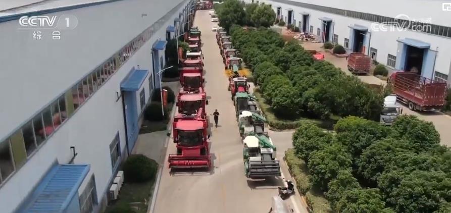 總臺央視記者 陳博:這里是河南省駐馬店市最大的一家農(nóng)機專業(yè)合作社,再有5天左右的時間,駐馬店就將迎來小麥大規(guī)模機收作業(yè)?,F(xiàn)在在這里我們可以看到這一系列的小麥聯(lián)合收割機、摟草機、打捆機都已經(jīng)完成了麥收前的維修和保養(yǎng)的準備工作。在這里我們觀察到一個新的現(xiàn)象,就是像這樣大馬力、大喂入量的農(nóng)機,它的數(shù)量有了一個明顯的提升,它們投入到生產(chǎn)中就會大幅提升麥收的作業(yè)效率。與此同時,在我左手邊這些履帶式收割機,它們的數(shù)量也有了增加,在后期如果遇到連陰雨天氣的話,地面會濕滑泥濘,普通農(nóng)機下不了田,它們就會發(fā)揮一個很大的作用,為后續(xù)的應(yīng)急作業(yè)提供一個有力的保障。
