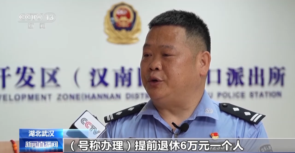 武漢經濟技術開發(fā)區(qū)公安分局沌口派出所民警 溫次文:對方號稱辦理提前退休6萬元一個人,補交醫(yī)保,社保手續(xù)費4萬元一個人,掛靠機關事業(yè)單位退休3萬元一個人,增加工齡,提高退休待遇4萬元一個人,這4個項目下來估計每個人要交17萬元左右。