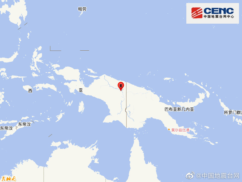 中國地震臺網(wǎng)正式測定:07月03日10時(shí)51分在印尼巴布亞?。暇?.90度,東經(jīng)140.25度)發(fā)生5.3級地震,震源深度20千米。