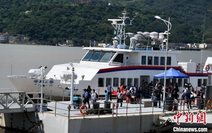 7月3日,“安麒6號”輪抵達(dá)福州馬尾瑯岐客運(yùn)碼頭,馬尾-馬祖航線運(yùn)送旅客突破666666人次。 中新社記者 王東明 攝