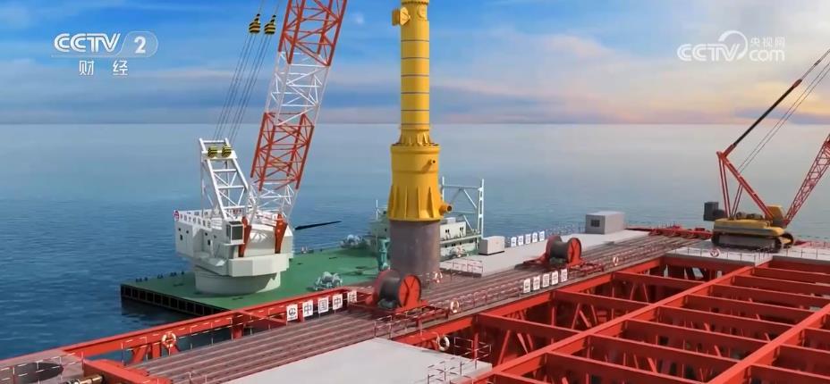 為了給大功率鉆機(jī)搭建一個(gè)穩(wěn)定的施工平臺(tái),2023年年初,一個(gè)重達(dá)7600噸的自浮式鉆孔平臺(tái)抵達(dá)5號(hào)墩位。這個(gè)全新研發(fā)的鉆孔平臺(tái),平面尺寸超過13000平方米,相當(dāng)于31個(gè)標(biāo)準(zhǔn)籃球場(chǎng)大小,定位誤差卻控制在30厘米以內(nèi),角度偏差小于1度。這在世界橋梁建設(shè)中還是首次嘗試。