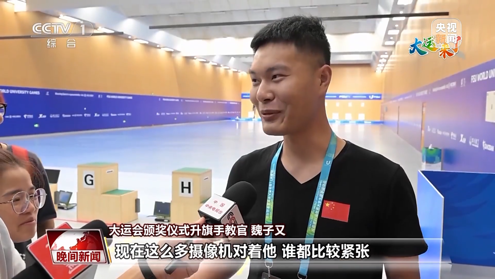 大運(yùn)會(huì)頒獎(jiǎng)儀式升旗手教官 魏子又:她們也都還是十幾歲的孩子,這么多攝像機(jī)對(duì)著她們,都比較緊張,還是需要經(jīng)常面對(duì)鏡頭來成長自己。