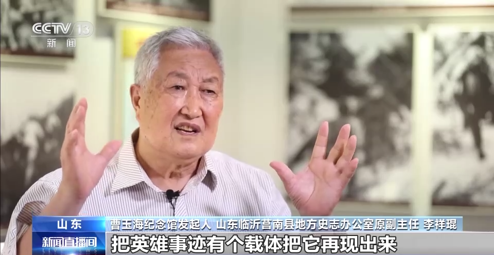 曹玉海紀(jì)念館發(fā)起人 山東臨沂莒南縣地方史志辦公室原副主任 李祥琨:建曹玉海紀(jì)念館就是把英雄事跡有個(gè)載體把它再現(xiàn)出來(lái),教育和鼓舞、沂蒙人民不斷前進(jìn)、艱苦奮斗、奪取勝利。