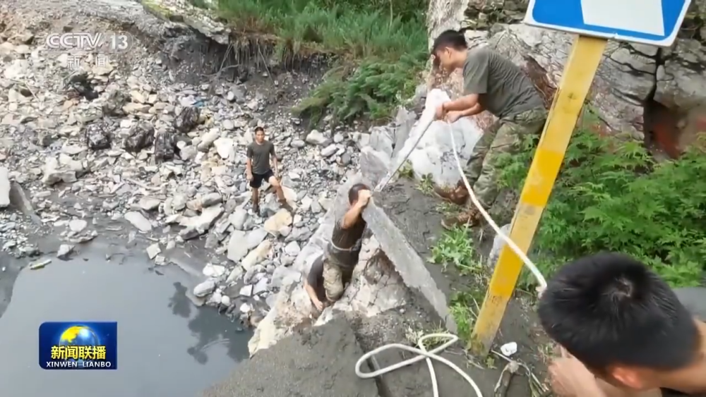 某抗洪搶險應(yīng)急通信保障任務(wù)分隊指揮員 于林平:準備上去的時候,下面的那個路突然塌方了,我整個人就像吊單杠一樣,整個給我拉直了,然后我的戰(zhàn)友把我拉上來了。下面全部是碎石,水流非常湍急,非常有可能會被沖下去。