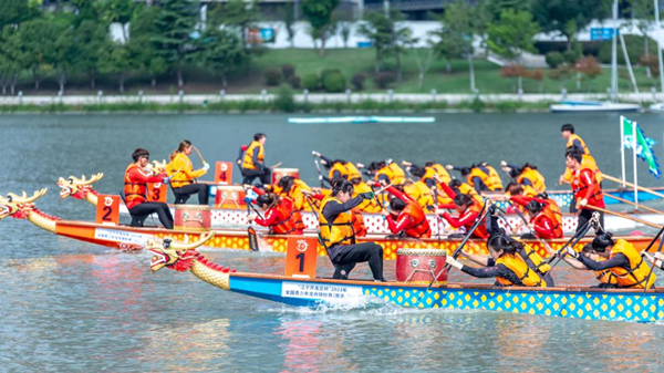 據(jù)了解,早在2021年,南京市體育集團(tuán)與江寧開發(fā)區(qū)共同打造的國家級水上運(yùn)動項(xiàng)目——帆船訓(xùn)練基地落戶九龍湖國際企業(yè)總部園。今年端午節(jié)當(dāng)天,第二十屆南京市外商投資企業(yè)龍舟邀請賽在江寧百家湖拉開戰(zhàn)幕,在寧外企揚(yáng)子巴斯夫、菲尼克斯電氣、西門子數(shù)控、舍弗勒等16支參賽隊(duì)伍激情揮槳、奮勇爭先。