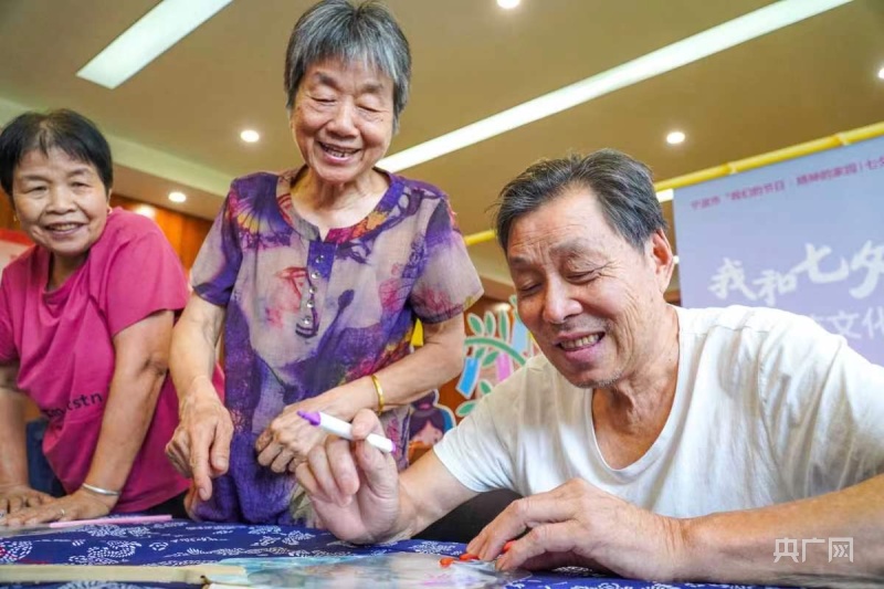 現(xiàn)場,老人們在海曙區(qū)橫街鎮(zhèn)成人文化技術(shù)學(xué)校教師的介紹下,了解七夕節(jié)的來歷和意義,并體驗“穿針乞巧”、團(tuán)扇制作。此外,轄區(qū)青少年也一起來參加活動,在豐富暑期生活的同時,與爺爺奶奶們共同感悟傳統(tǒng)文化的魅力。