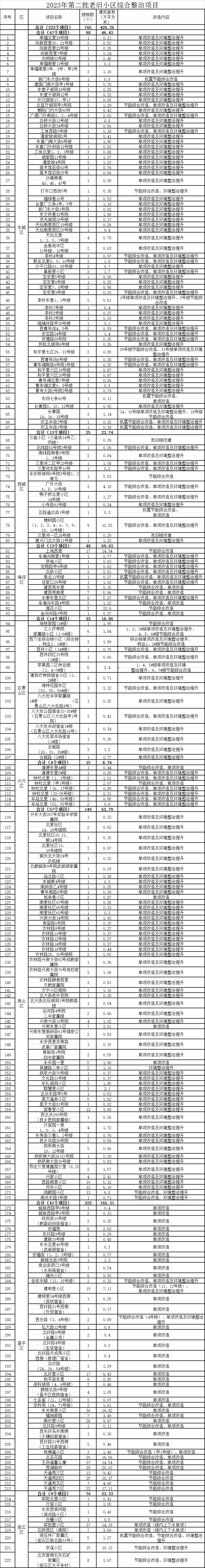 ?。?023年第二批老舊小區(qū)綜合整治項目名單,圖源:北京市住建委,央廣網發(fā))