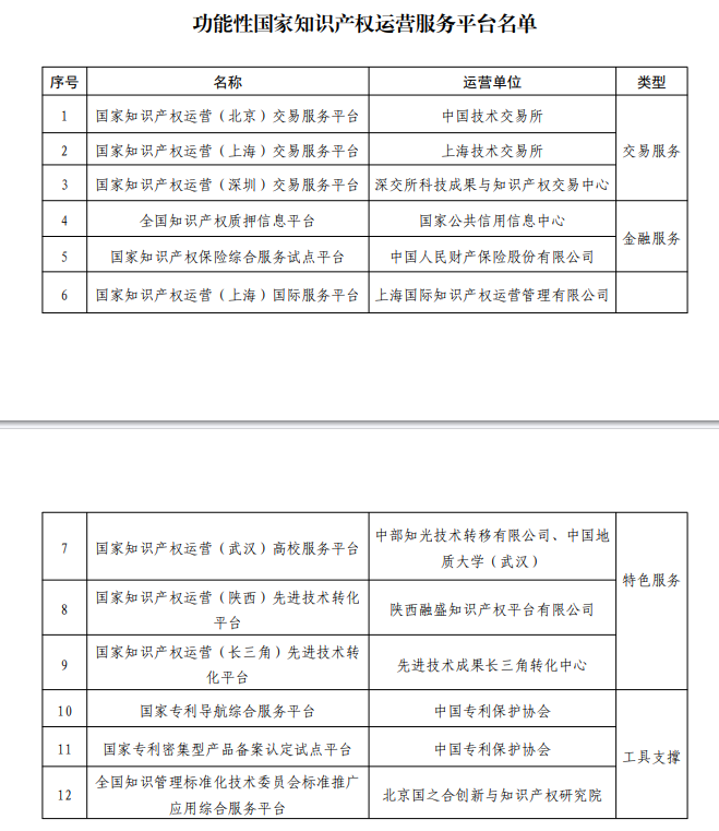 國家知識(shí)產(chǎn)權(quán)局認(rèn)定12家功能性國家知識(shí)產(chǎn)權(quán)運(yùn)營服務(wù)平臺(tái)