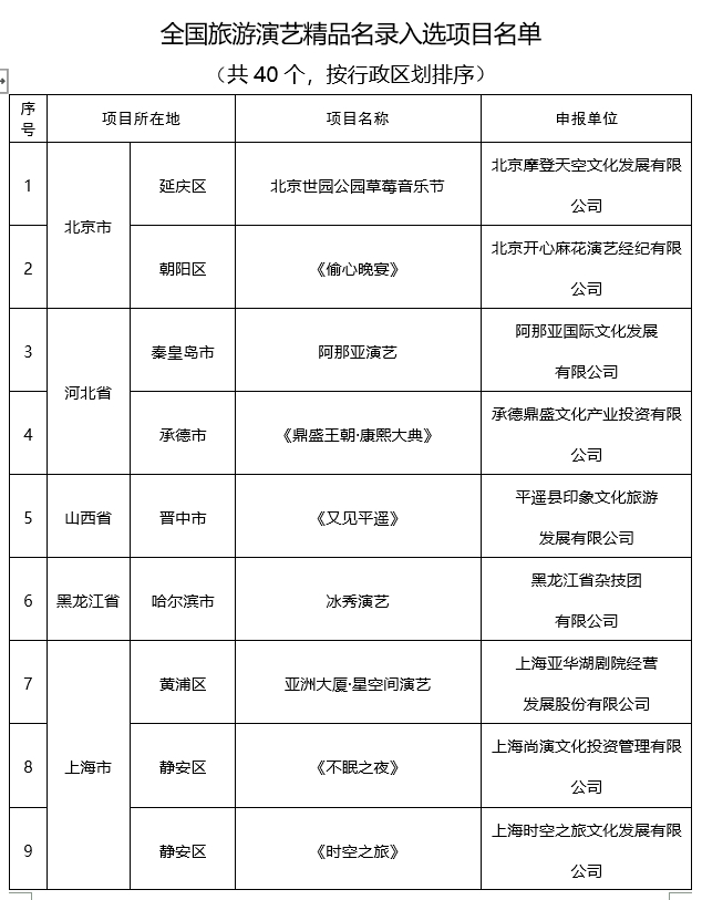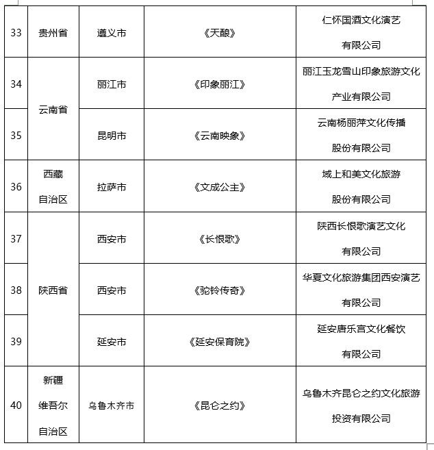 共40個!全國旅游演藝精品名錄入選項(xiàng)目名單出爐