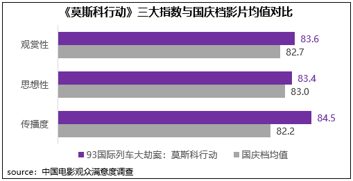 《莫斯科行動》根據(jù)20世紀90年代跨境追捕搶劫案犯案件改編,在真實社會事件基礎之上有機融入商業(yè)化要素,三大指數(shù)得分均超83分。