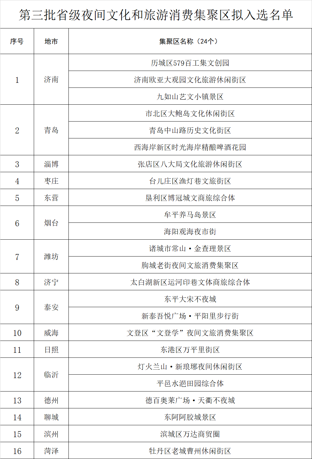 山東省擬確定24家省級夜間文化和旅游消費(fèi)集聚區(qū)