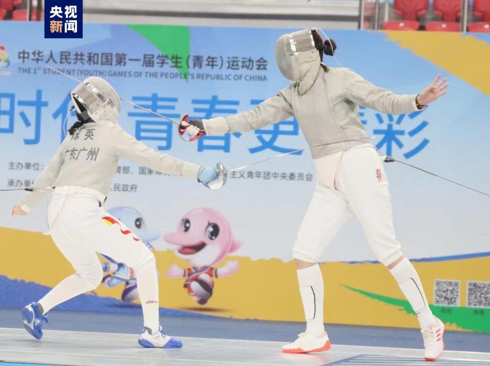 11月7日,第一屆全國學(xué)生(青年)運動會擊劍男女佩劍團體決賽在廣西體育局三塘體育訓(xùn)練比賽基地綜合體育館進行,南京隊和廣州隊戰(zhàn)勝各自對手奪得金牌。