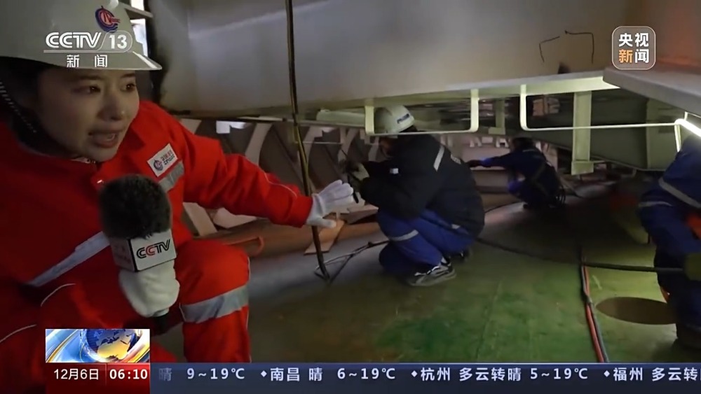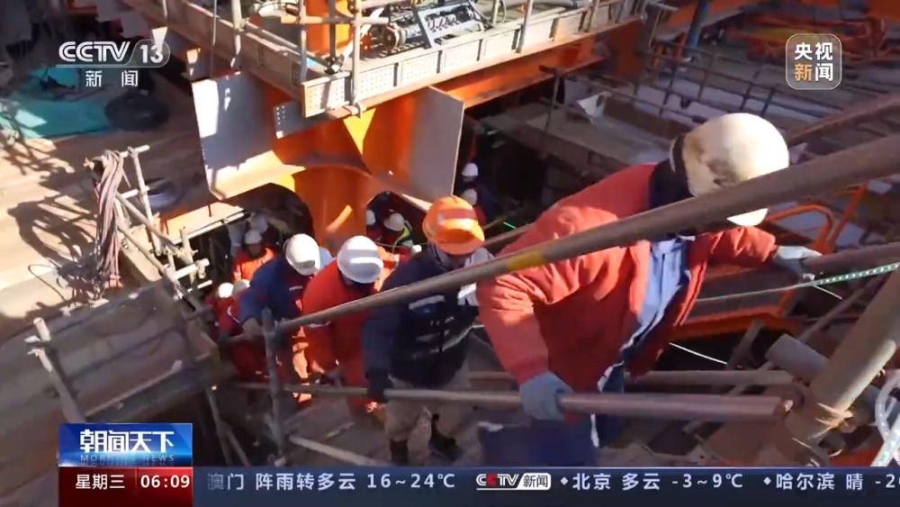 總臺(tái)央視記者 張叢婧:可以看到能源碗里的空間非常狹窄,因?yàn)檫@些模塊由幾十萬(wàn)個(gè)零部件組成,集成度很高,我們現(xiàn)在進(jìn)一個(gè)施工現(xiàn)場(chǎng)里看一下。工人師傅們正在這里鋪設(shè)電纜,他們都是要蹲著,像這樣挪動(dòng)才能夠完成這些操作。我發(fā)現(xiàn)其實(shí)像這樣的高難度施工,幾乎涉及所有的工種。