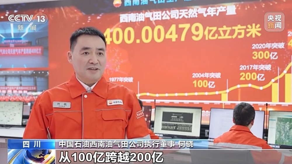 中國石油西南油氣田公司執(zhí)行董事 何驍:從100億跨越200億,我們用了13年的時間,從200億到建成300億戰(zhàn)略大氣區(qū)僅用3年,今年上產400億,占同期全國天然氣產量的1/5,離實現2025年上產500億方的目標又近了一步。