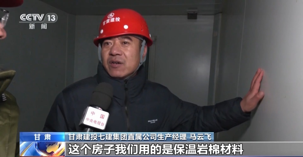 甘肅建投七建集團直屬公司生產經理 馬云飛:這個房子的面積是18個平方,3米乘6米,能住4到6個人。 房子我們用的是保溫巖棉材料,屬于A級防火等級的材料。 取暖問題考慮用電暖氣。 我們下一步考慮也要把水引進來,包括電。老百姓只要進來打掃打掃房間,完全可以達到入住條件。