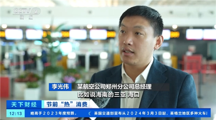 某航空公司鄭州分公司總經(jīng)理 李光偉:目前比較火熱的是春運(yùn)期間的一些旅游航線,比如海南的三亞、??冢颇系睦ッ?、西雙版納等熱門航線。相較于11月份、12月份,增長(zhǎng)了10倍左右,票比較緊張。