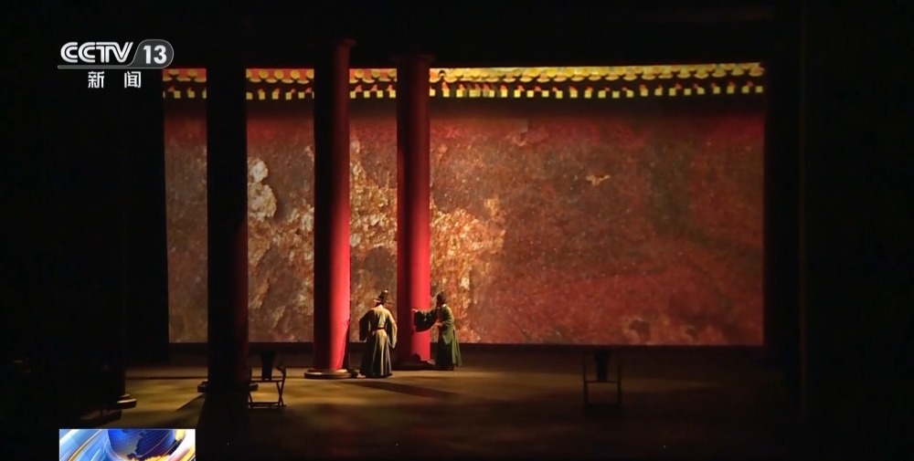 舞臺(tái)上,靈感來(lái)自故宮大殿的八根紅色立柱構(gòu)建起整個(gè)表演空間,配合多媒體的數(shù)字影像,營(yíng)造出極具東方審美意境的戲劇空間。兼具厚重與靈動(dòng),讓歷史劇更具當(dāng)代審美。