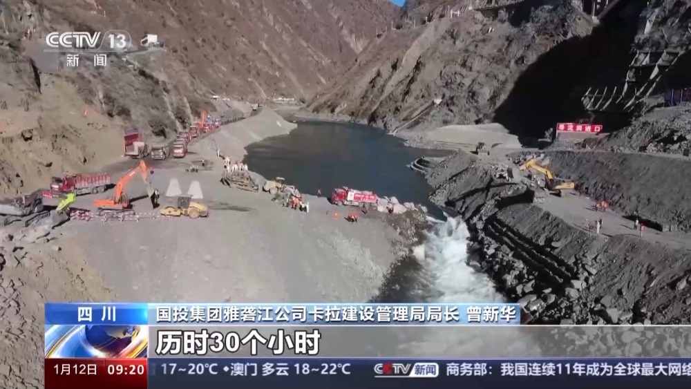 國投集團(tuán)雅礱江公司卡拉建設(shè)管理局局長 曾新華:此次截流面對(duì)流量大、流速快、龍口水深、河床水位高、場(chǎng)地狹窄等難題。截流過程中,總共拋填石料超過12萬立方米,歷時(shí)30個(gè)小時(shí)。