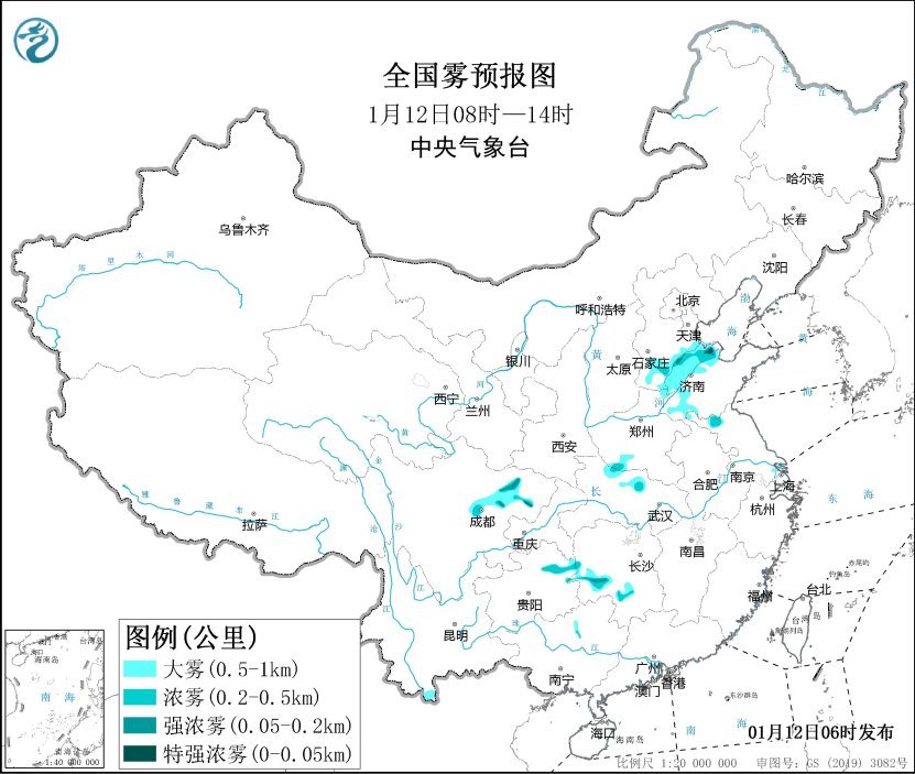 央視網(wǎng)消息:中央氣象臺1月12日06時繼續(xù)發(fā)布大霧黃色預警:預計,1月12日的早晨至上午時段,河北南部、山東北部和西部、湖北北部、四川盆地北部、湖南西部、貴州東部等地的部分地區(qū)有大霧天氣,其中山東西北部、四川盆地北部、湖北北部、湖南西部、貴州東北部等地的部分地區(qū)有能見度不足500米的濃霧,局地有能見度不足200米的強濃霧。