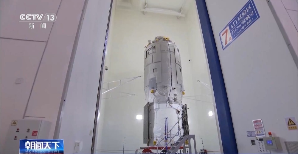 今天(15日)早上,天舟七號貨運飛船和長征七號遙八運載火箭組合體開始進行垂直轉運。