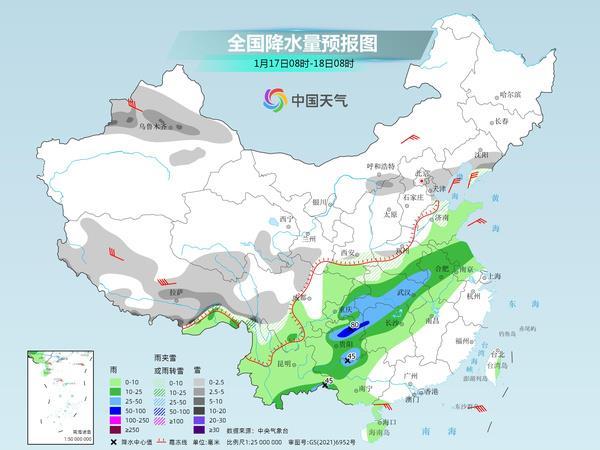 后天,新疆沿天山地區(qū)、內(nèi)蒙古中部偏南地區(qū)、西藏中南部、青海南部、甘肅南部、遼寧南部、山東北部、陜西南部、河南西部、云南西北部等地的部分地區(qū)有小到中雪或雨夾雪;其中西藏東部、云南西北部等地局地大到暴雪;西南地區(qū)東部、黃淮中南部、江淮、江漢、江南北部和西部、華南西部、云南等地部分地區(qū)有小到中雨,其中重慶東南部、河南東南部、湖北東部和南部、湖南西北部、貴州中東部、云南東南部等地的部分地區(qū)有大雨,局地暴雨。