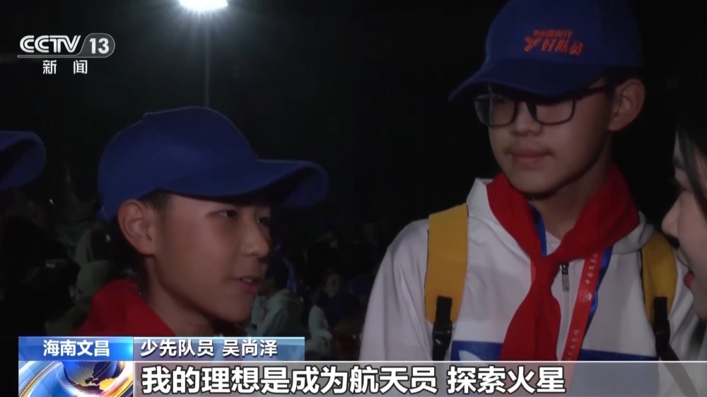前來文昌追火箭的人,來自五湖四海,在文昌航天發(fā)射場(chǎng)周邊的淇水灣海灘、銅鼓嶺景區(qū)等地,觀眾們?cè)缭绲刈龊糜^看發(fā)射的準(zhǔn)備。在全國少工委的組織帶領(lǐng)下,來自福建、四川、山西、甘肅等地近百名少先隊(duì)員,走進(jìn)文昌航天發(fā)射場(chǎng),近距離感受火箭發(fā)射升空。