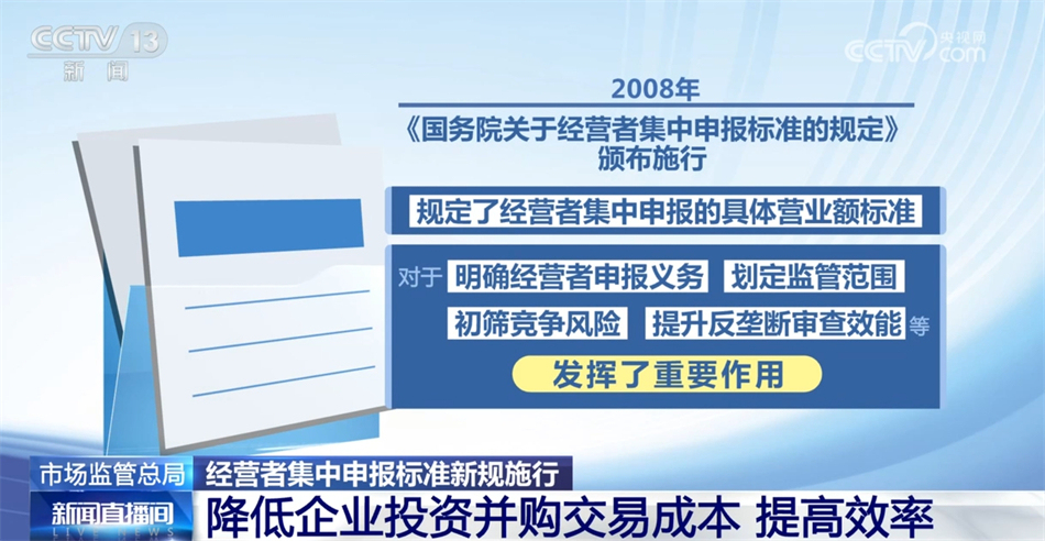 市場(chǎng)監(jiān)管總局介紹,經(jīng)營(yíng)者集中申報(bào)標(biāo)準(zhǔn)是經(jīng)營(yíng)者集中反壟斷審查制度的重要內(nèi)容。2008年《國(guó)務(wù)院關(guān)于經(jīng)營(yíng)者集中申報(bào)標(biāo)準(zhǔn)的規(guī)定》頒布施行,規(guī)定了經(jīng)營(yíng)者集中申報(bào)的具體營(yíng)業(yè)額標(biāo)準(zhǔn),對(duì)于明確經(jīng)營(yíng)者申報(bào)義務(wù)、劃定監(jiān)管范圍、初篩競(jìng)爭(zhēng)風(fēng)險(xiǎn)、提升反壟斷審查效能等發(fā)揮了重要作用。