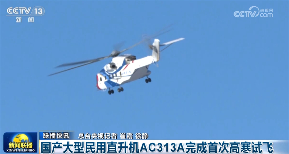 航空工業(yè)集團(tuán)1月31日宣布,我國(guó)自主研制的大型民用直升機(jī)AC313A在漠河完成了首次高寒試飛,對(duì)直升機(jī)極限飛行速度、動(dòng)力系統(tǒng)的低溫啟動(dòng)試驗(yàn)等進(jìn)行了驗(yàn)證。AC313A直升機(jī)可滿足我國(guó)全疆域范圍內(nèi)的森林消防、搜索救援等多領(lǐng)域使用要求。