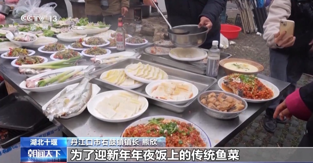 丹江口市石鼓鎮(zhèn)鎮(zhèn)長 熊欣:這些菜從魚頭、到魚身、到魚皮,也是我們當(dāng)?shù)貫榱擞履昴暌癸埳系膫鹘y(tǒng)魚菜。