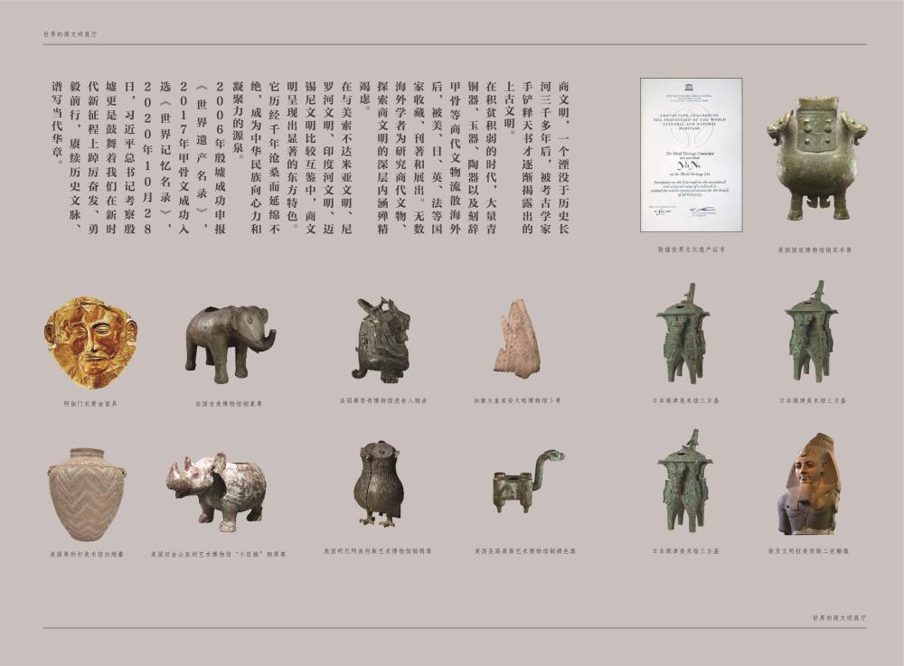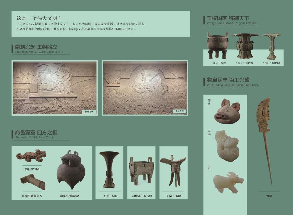 基本陳列將長期對公眾開放,展示幾代殷墟考古人接力前行、不斷求索,取得了一次又一次重要發(fā)掘成果,對夏商都邑的深入研究,為不同時期不同區(qū)域的商文化研究提供了對比標尺。眾多首次亮相的各類珍貴文物再現(xiàn)了商朝繁盛的城市文明,完善的禮樂文明、發(fā)達的青銅文明、燦爛的文字文明以及高超的科技文明。全面系統(tǒng)地展現(xiàn)了我國商代晚期都城的風貌,讓全世界看到一個中華文明早期發(fā)展階段最為輝煌的時代——大邑商。