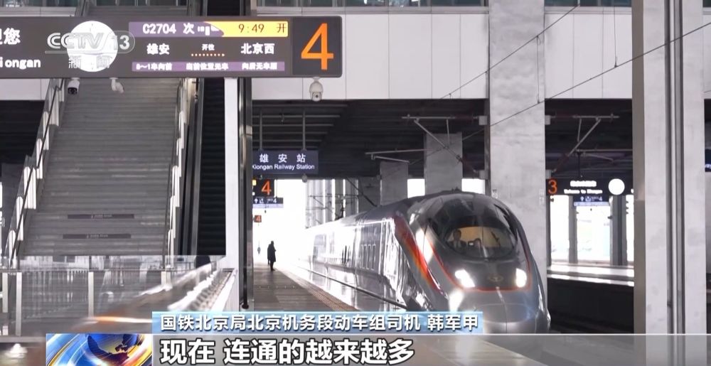 國(guó)鐵北京局北京機(jī)務(wù)段動(dòng)車組司機(jī) 韓軍甲:剛開車到雄安的時(shí)候,這里只是一座車站?,F(xiàn)在,連通的越來(lái)越多,像去年年底天津方向過來(lái)的津興高鐵,和現(xiàn)在正在建設(shè)當(dāng)中的南向的雄商、西向的雄忻高鐵,這里將是一座新的樞紐,想一想非常開心,我想多開幾年高鐵。