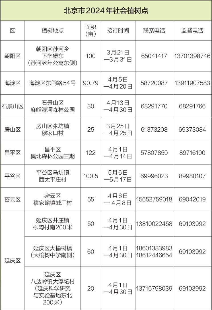 首都綠化委員會(huì)辦公室公布2024年義務(wù)植樹(shù)盡責(zé)接待點(diǎn)