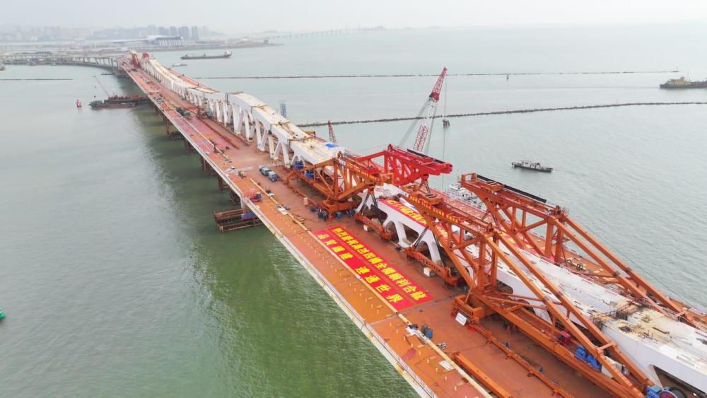 澳氹第四條跨海大橋連接澳門新城填海A區(qū)、填海E區(qū)以及港珠澳大橋人工島口岸區(qū),是構(gòu)建澳門城市交通體系的關(guān)鍵節(jié)點。該大橋于3月12日順利實現(xiàn)全橋合龍,由主體結(jié)構(gòu)工程全面邁入橋梁附屬結(jié)構(gòu)工程。(總臺記者 劉冰清)