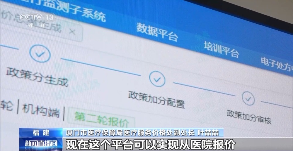 廈門(mén)市醫(yī)療保障局醫(yī)療服務(wù)價(jià)格處副處長(zhǎng) 葉喆喆:這個(gè)平臺(tái)可以實(shí)現(xiàn)從醫(yī)院報(bào)價(jià)到項(xiàng)目經(jīng)濟(jì)分的生成,到最后方案形成的全流程,極大地提高了我們的工作效率。