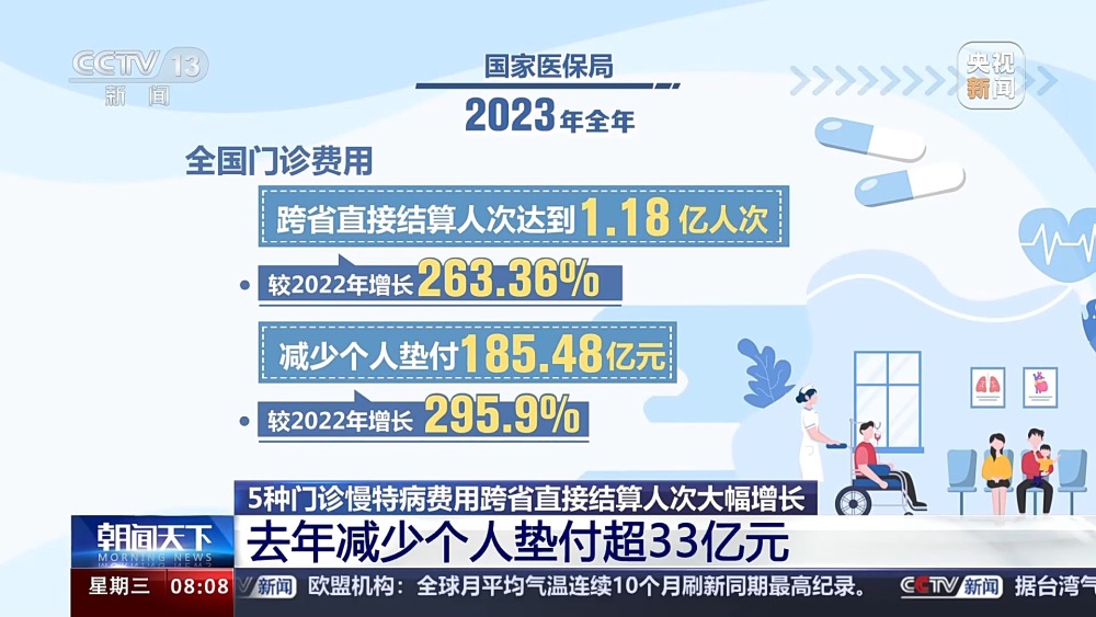 記者從國家醫(yī)保局獲悉,2023年,糖尿病、高血壓等5種門診慢特病費用跨省直接結(jié)算人次出現(xiàn)了大幅增長,減少個人墊付超33億元。