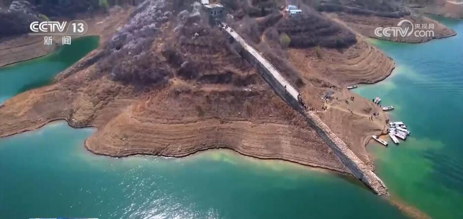 您現(xiàn)在看到的是位于河北省寬城滿族自治縣境內(nèi)的潘家口水庫“水下長城”。長城內(nèi)外,漫山遍野的山杏花悄然綻放,在春風中爭芳斗艷,時而飄來陣陣花香。春日里,盛開的杏花、碧綠的湖水與巍峨的長城交相輝映,形成了剛?cè)嶂赖耐昝廊诤希瑯?gòu)成一幅絕美的畫卷,吸引了眾多游客登上長城前來賞花踏青。