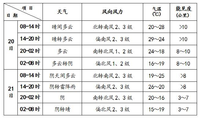 21日傍晚可能出現(xiàn)雷陣雨天氣,雨量不大,請關(guān)注最新天氣預(yù)報(bào);大部分時(shí)間體感舒適,但晝夜溫差較大,早晨體感偏涼,午后偏熱,請根據(jù)氣溫變化及時(shí)調(diào)整著裝,以防感冒。