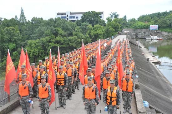 下午15時,大竹縣烏木水庫大堤上,200余名預備役官兵身著橘色救生衣集結完畢,應急分隊的紅旗迎風招展,機關各科協(xié)調(diào)的保障力量也源源不斷往集結地域開進。15時20分,應急分隊已到達指定地域,救援物資全部到位。