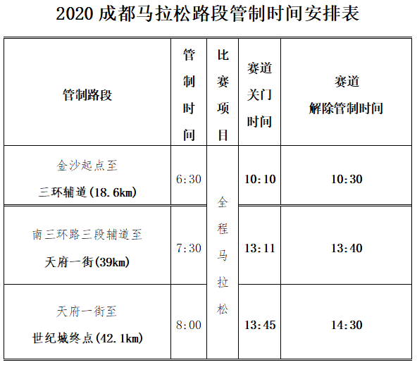 為保障2020成都國際馬拉松賽事的順利進(jìn)行,組委會(huì)將會(huì)在以下時(shí)段占用部分社會(huì)道路進(jìn)行賽事所需設(shè)施的搭建工作: