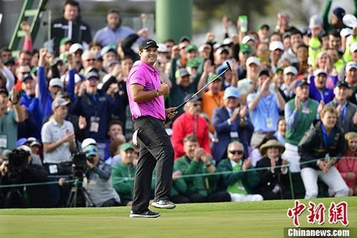 當?shù)貢r間4月8日,總獎金1100萬美元的第82屆美國大師賽完成最后一輪賽事。第五次參加美國大師賽的帕特里克·里德(PatrickReed)頂住壓力,四輪過后以總成績273桿獲得美國大師賽冠軍,披上榮耀綠夾克。中新社發(fā) Scott K. Brown 攝