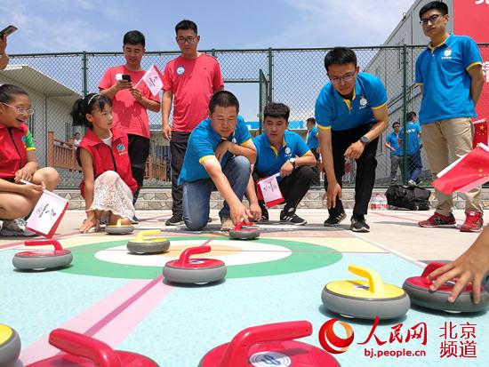 活動(dòng)中,“海坨之星”地壺球隊(duì)的小隊(duì)員們,和冬奧工程一線建設(shè)者們一起打了一場充滿歡聲笑語的友誼地壺球賽。一張不足10米長的條幅設(shè)定了地壺球比賽的場地范圍,地壺球隊(duì)小隊(duì)員和冬奧建設(shè)者們分為兩組,兩兩對抗,他們手持地壺球,或單膝觸地、輕輕一推,或匍匐在地、全力以赴,比賽得分你追我趕,過程中充滿了智慧和樂趣?!皧W林匹克日”推動(dòng)全民運(yùn)動(dòng)的題中之義就在來回推動(dòng)的小小地壺球中逐漸顯現(xiàn)。